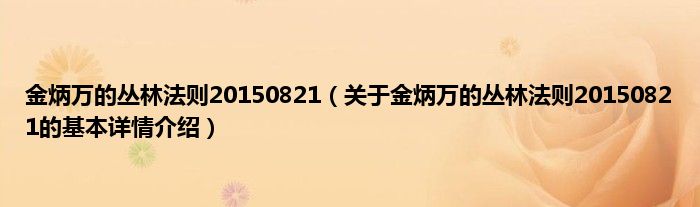 本文关于金炳万的丛林法则20150821的基本详情介绍就讲解完毕,希望对大家有所帮助。