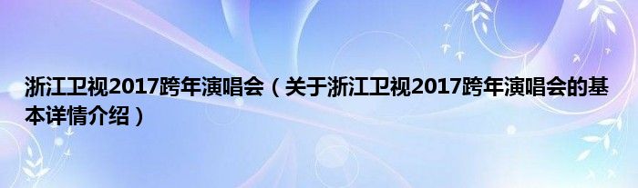 本文关于浙江卫视2017跨年演唱会的基本详情介绍就讲解完毕,希望对大家有所帮助。