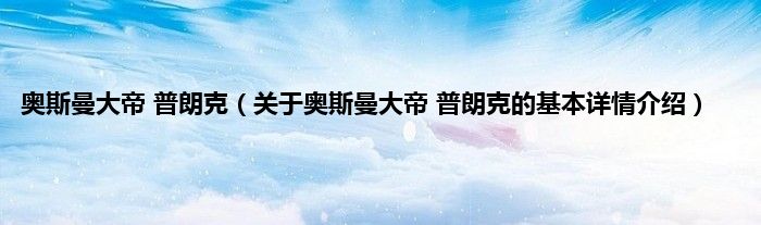 本文关于奥斯曼大帝 普朗克的基本详情介绍就讲解完毕,希望对大家有所帮助。