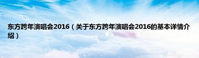 本文关于东方跨年演唱会2016的基本详情介绍就讲解完毕,希望对大家有所帮助。