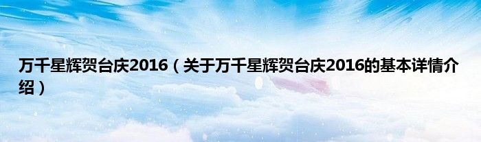 本文关于万千星辉贺台庆2016的基本详情介绍就讲解完毕,希望对大家有所帮助。