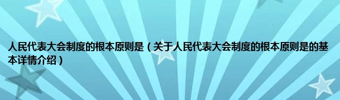 本文关于人民代表大会制度的根本原则是的基本详情介绍就讲解完毕,希望对大家有所帮助。