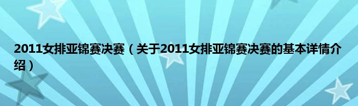 本文关于2011女排亚锦赛决赛的基本详情介绍就讲解完毕,希望对大家有所帮助。