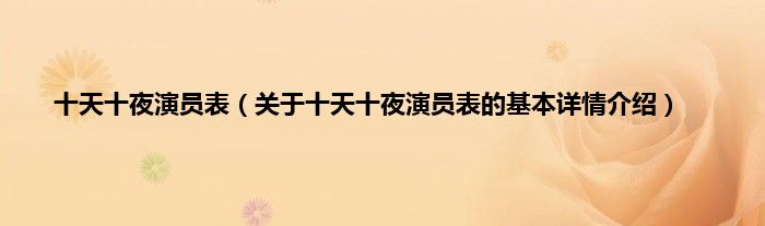 本文关于十天十夜演员表的基本详情介绍就讲解完毕,希望对大家有所帮助。