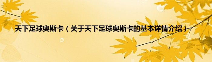本文关于天下足球奥斯卡的基本详情介绍就讲解完毕,希望对大家有所帮助。