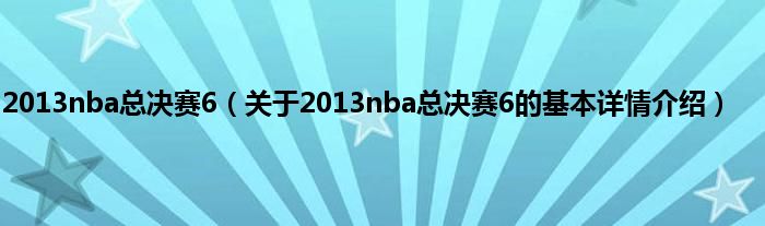 本文关于2013nba总决赛6的基本详情介绍就讲解完毕,希望对大家有所帮助。