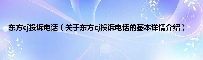 本文关于东方cj投诉电话的基本详情介绍就讲解完毕,希望对大家有所帮助。
