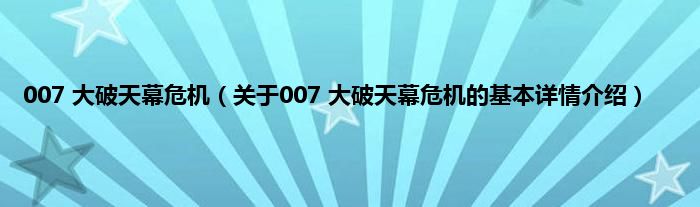 本文关于007 大破天幕危机的基本详情介绍就讲解完毕,希望对大家有所帮助。