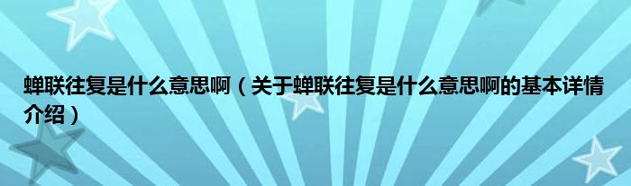 本文关于蝉联往复是什么意思啊的基本详情介绍就讲解完毕,希望对大家有所帮助。