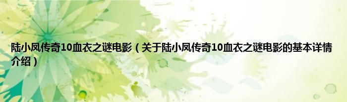 本文关于陆小凤传奇10血衣之谜电影的基本详情介绍就讲解完毕,希望对大家有所帮助。