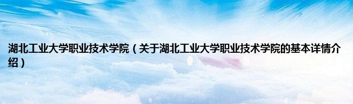 本文关于湖北工业大学职业技术学院的基本详情介绍就讲解完毕,希望对大家有所帮助。