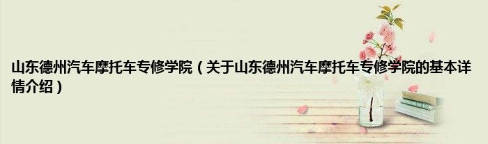 山东德州汽车摩托车专修学院(关于山东德州汽车摩托车专修学院的基本详情介绍)