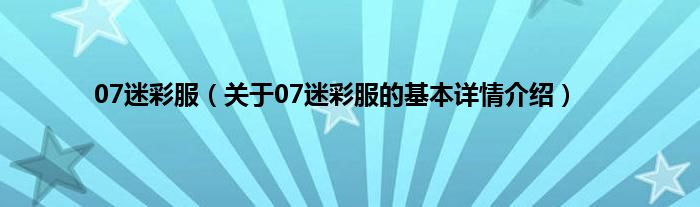 07迷彩服(关于07迷彩服的基本详情介绍)