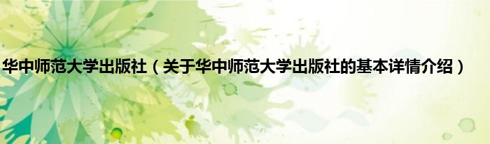 本文关于华中师范大学出版社的基本详情介绍就讲解完毕,希望对大家有所帮助。