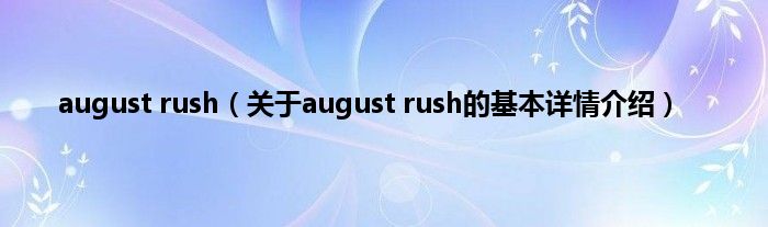 本文关于august rush的基本详情介绍就讲解完毕,希望对大家有所帮助。