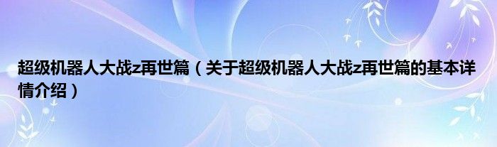 本文关于超级机器人大战z再世篇的基本详情介绍就讲解完毕,希望对大家有所帮助。
