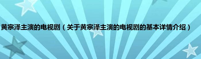 本文关于黄宗泽主演的电视剧的基本详情介绍就讲解完毕,希望对大家有所帮助。