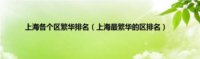 大家好,小问来为大家解答以上问题。上海各个区繁华排名,上海最繁华的区排名这个很多人还不知道,现在让我们一起来看看吧!