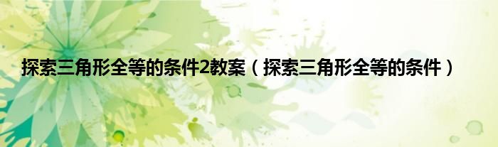 大家好,小问来为大家解答以上问题。探索三角形全等的条件2教案,探索三角形全等的条件这个很多人还不知道,现在让我们一起来看看吧!