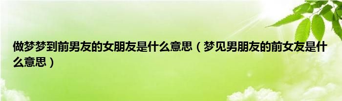 大家好,综合小编来为大家讲解下。做梦梦到前男友的女朋友是什么意思,梦见男朋友的前女友是什么意思这个很多人还不知道,现在让我们一起来看看吧!