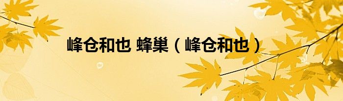 大家好,小问来为大家解答以上问题。峰仓和也 蜂巢,峰仓和也这个很多人还不知道,现在让我们一起来看看吧!