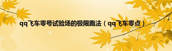 以上就是【qq飞车零号试验场的极限跑法,qq飞车零点】相关内容。