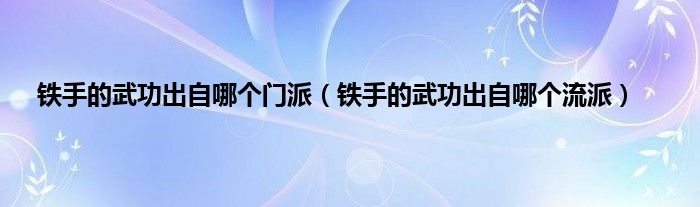 以上就是【铁手的武功出自哪个门派,铁手的武功出自哪个流派】相关内容。