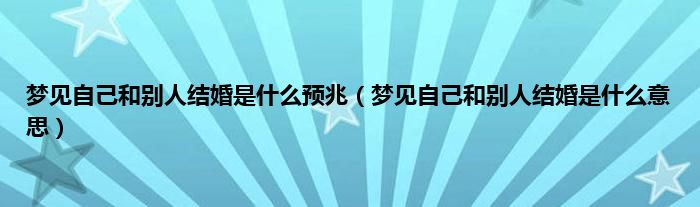 大家好,综合小编来为大家讲解下。梦见自己和别人结婚是什么预兆,梦见自己和别人结婚是什么意思这个很多人还不知道,现在让我们一起来看看吧!