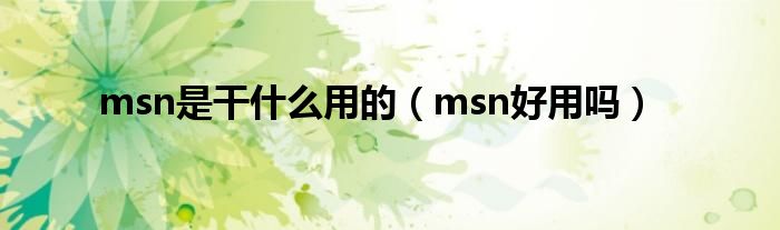 以上就是【msn是干什么用的,msn好用吗】相关内容。