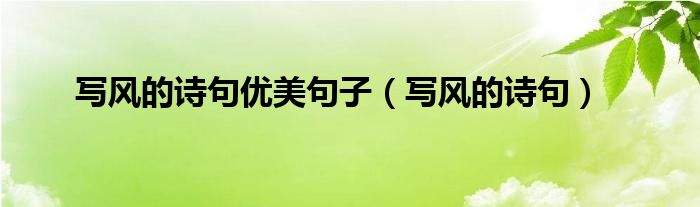以上就是【写风的诗句优美句子,写风的诗句】相关内容。