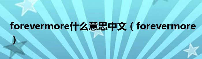 大家好,小问来为大家解答以上问题。forevermore什么意思中文,forevermore这个很多人还不知道,现在让我们一起来看看吧!