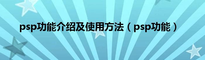 大家好,小问来为大家解答以上问题。psp功能介绍及使用方法,psp功能这个很多人还不知道,现在让我们一起来看看吧!