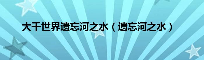 大家好,小问来为大家解答以上问题。大千世界遗忘河之水,遗忘河之水这个很多人还不知道,现在让我们一起来看看吧!