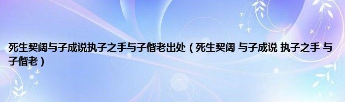 大家好,小问来为大家解答以上问题。死生契阔与子成说执子之手与子偕老出处,死生契阔 与子成说 执子之手 与子偕老这个很多人还不知道,现在让我们一起来看看吧!