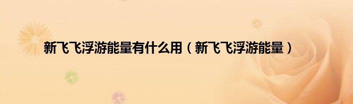 大家好,小问来为大家解答以上问题。新飞飞浮游能量有什么用,新飞飞浮游能量这个很多人还不知道,现在让我们一起来看看吧!
