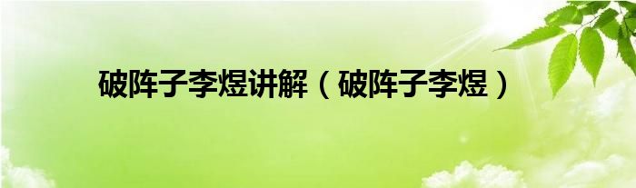 大家好,小问来为大家解答以上问题。破阵子李煜讲解,破阵子李煜这个很多人还不知道,现在让我们一起来看看吧!
