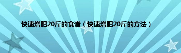 以上就是【快速增肥20斤的食谱,快速增肥20斤的方法】相关内容。