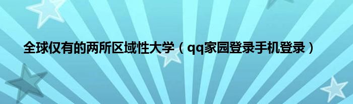 大家好,小问来为大家解答以上问题。全球仅有的两所区域性大学,qq家园登录手机登录这个很多人还不知道,现在让我们一起来看看吧!