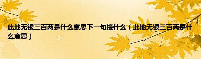 以上就是【此地无银三百两是什么意思下一句接什么,此地无银三百两是什么意思】相关内容。