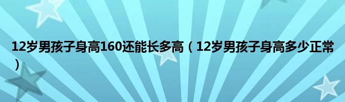 本文,12岁男孩子身高160还能长多高,12岁男孩子身高多少正常到此就分享完毕,希望对大家有所帮助。