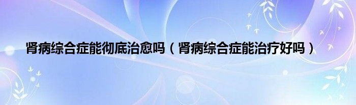 本文,肾病综合症能彻底治愈吗,肾病综合症能治疗好吗到此就分享完毕,希望对大家有所帮助。