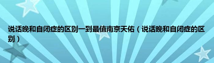 大家好,说话晚和自闭症的区别一到最值南京天佑,说话晚和自闭症的区别很多人还不知道,现在让我们一起来看看吧!
