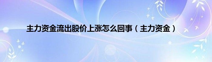 大家好,小问来为大家解答以上问题。主力资金流出股价上涨怎么回事,主力资金这个很多人还不知道,现在让我们一起来看看吧!