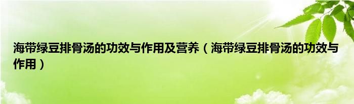 本文,海带绿豆排骨汤的功效与作用及营养,海带绿豆排骨汤的功效与作用到此就分享完毕,希望对大家有所帮助。