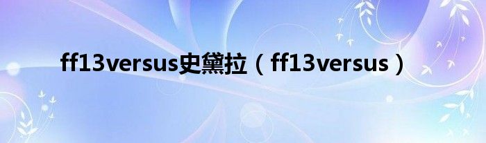 大家好,小问来为大家解答以上问题。ff13versus史黛拉,ff13versus这个很多人还不知道,现在让我们一起来看看吧!