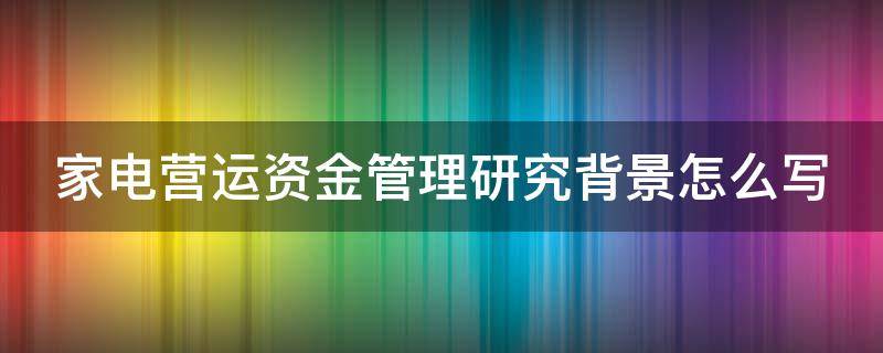 家电营运资金管理研究背景怎么写