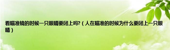 以上就是【看瞄准镜的时候一只眼睛要闭上吗?,人在瞄准的时候为什么要闭上一只眼睛】相关内容。