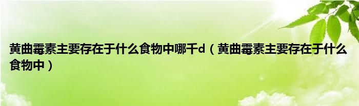 本文,黄曲霉素主要存在于什么食物中哪千d,黄曲霉素主要存在于什么食物中到此就分享完毕,希望对大家有所帮助。