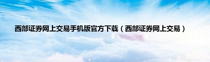 西部证券网上交易手机版官方下载(西部证券网上交易)