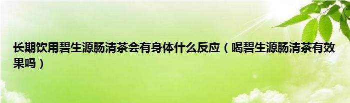 大家好,长期饮用碧生源肠清茶会有身体什么反应,喝碧生源肠清茶有效果吗很多人还不知道,现在让我们一起来看看吧!